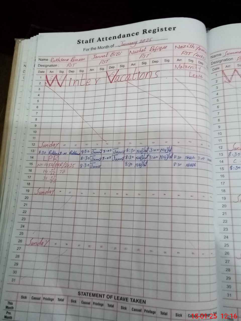 | Leave | Duty | Absent | Maternity | Medical | Ex- Pak |