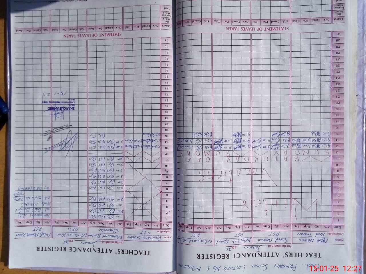 | CNIC | Full Name | Designation | R/C | Absence During Last Calender Month |