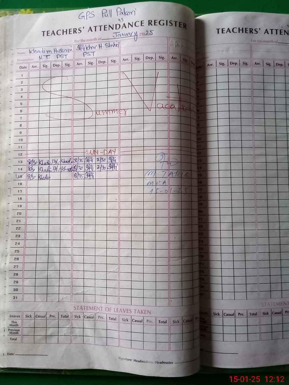 | Name: Kh**** Hu**** Designation: (School Headmaster's/Headmistress's) Pst Phone/Cell Number: 03**** |