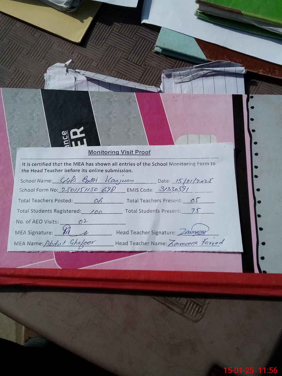 | EMIS Code: 31330591 | Name of School: GGPS BASTI KANJWAN | |||