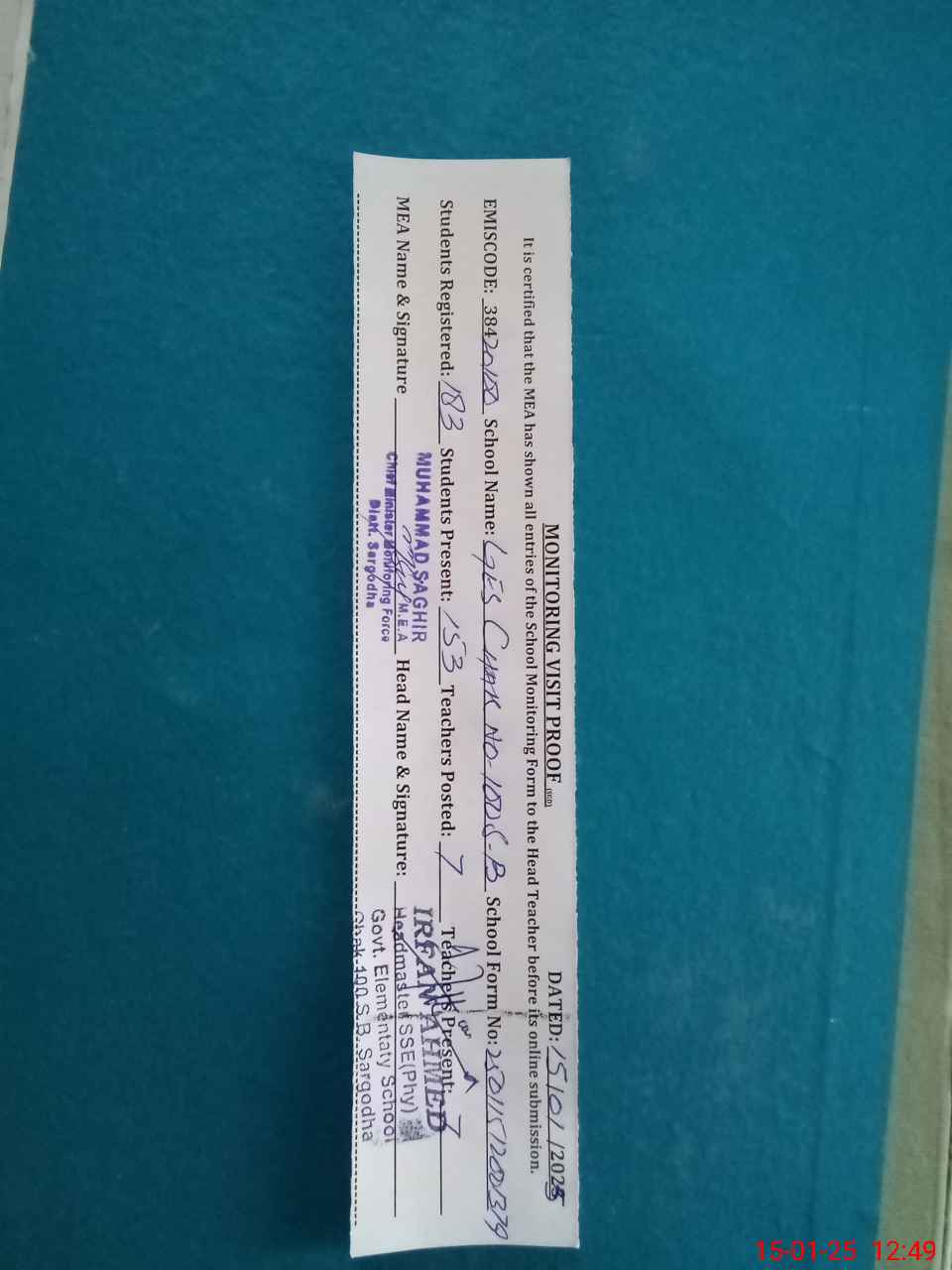 | EMIS Code: 38420100 | Name of School: GES CHAK NO.100 SB | |||