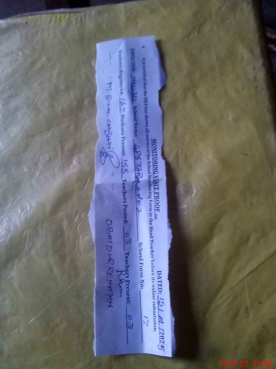 | Attendance Register | Head Teacher | MEA with School | Visit Proof |