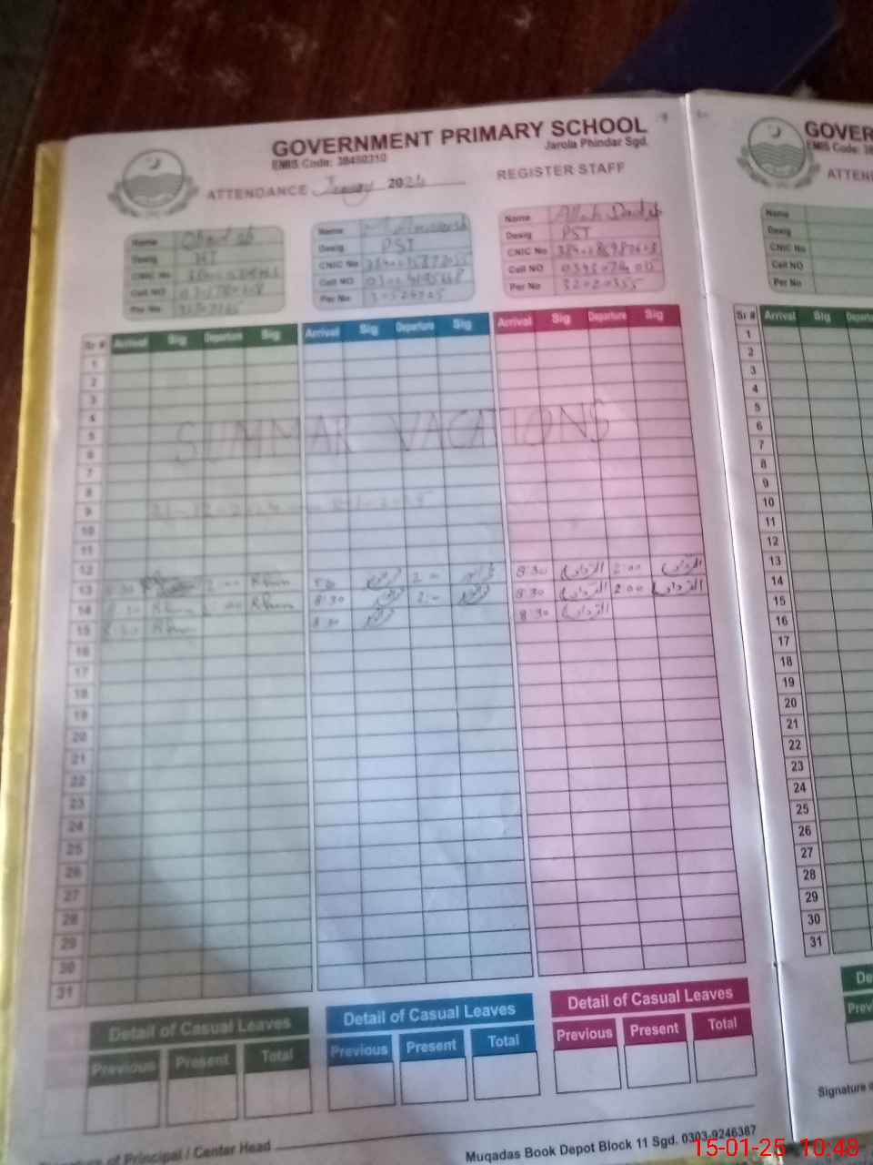 | CNIC | Full Name | Designation | R/C | Absence During Last Calender Month |