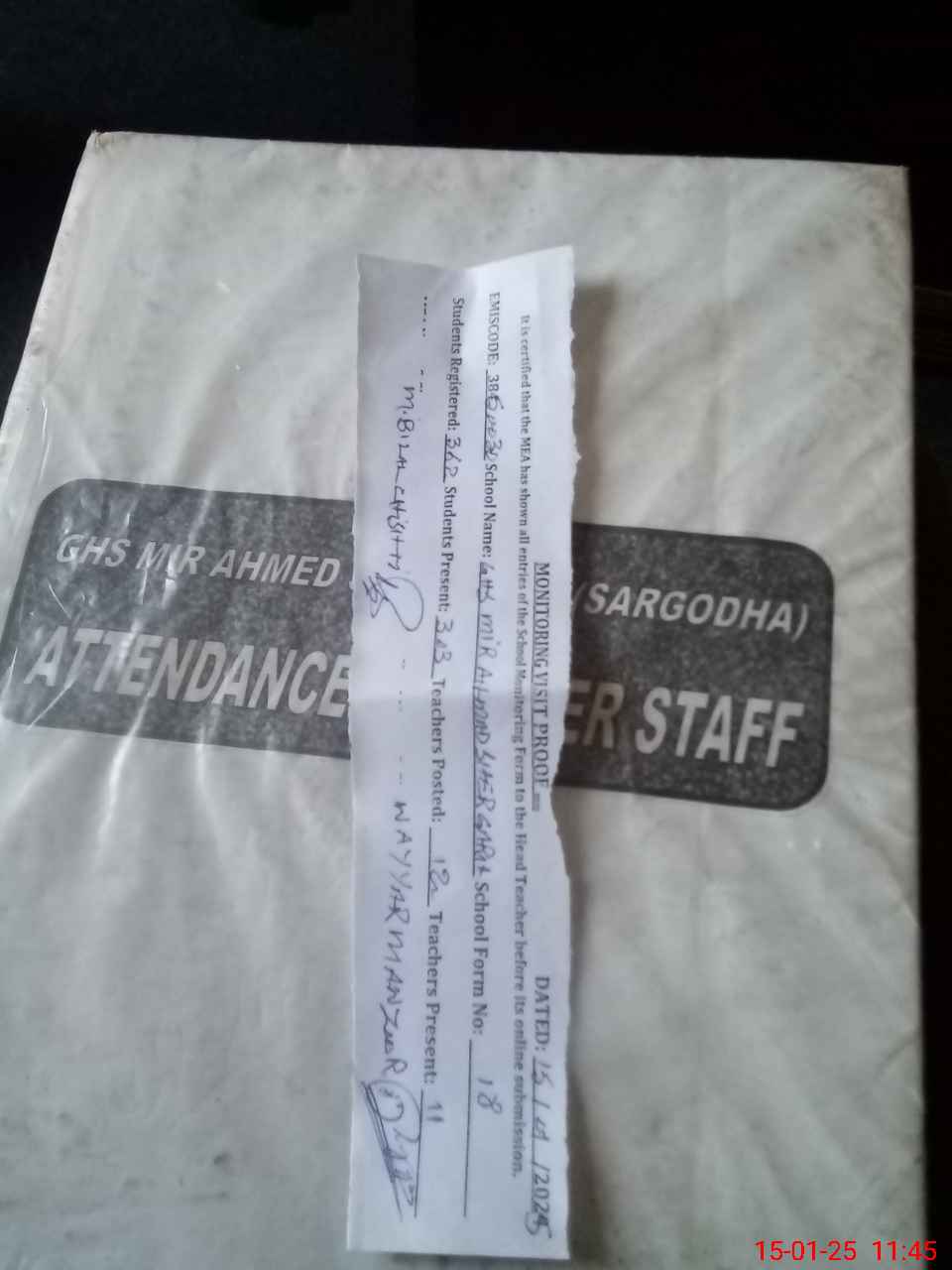 | Attendance Register | Head Teacher | MEA with School | Visit Proof |