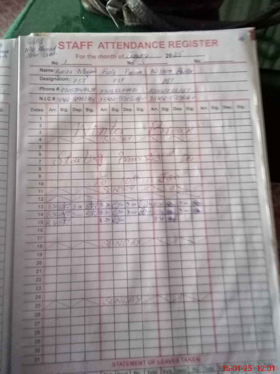 | Name: AY**** MA**** Designation: (School Headmaster's/Headmistress's) PST Phone/Cell Number: 03**** |