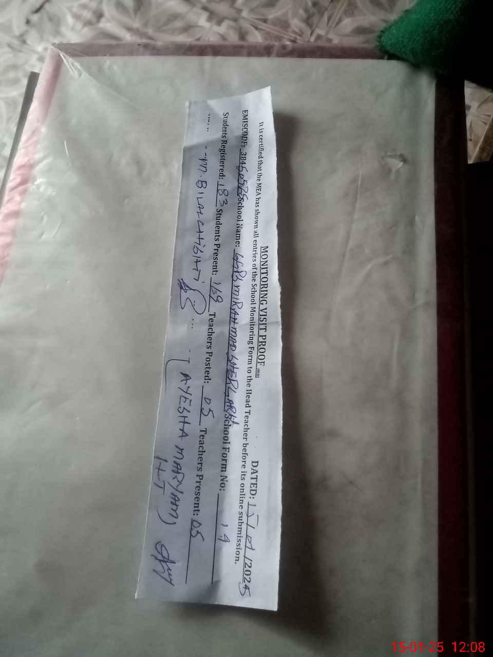 | Certified that this School was Inspected by the Undersigned MEA/DMO Today and the Information Stated Above is as Per Record. | |||||