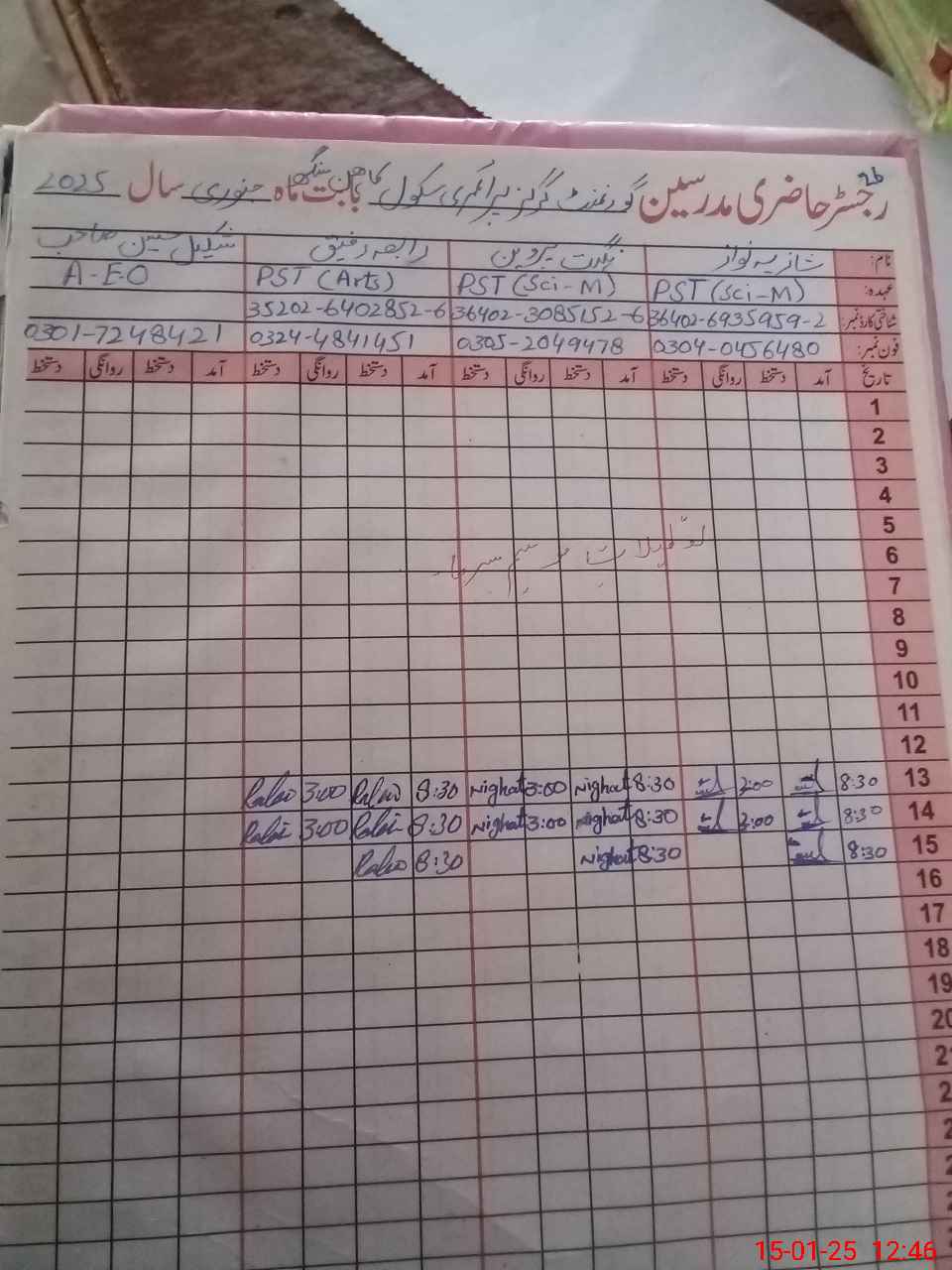 | Name: SH**** NA**** Designation: (School Headmaster's/Headmistress's) PST Phone/Cell Number: 03**** |