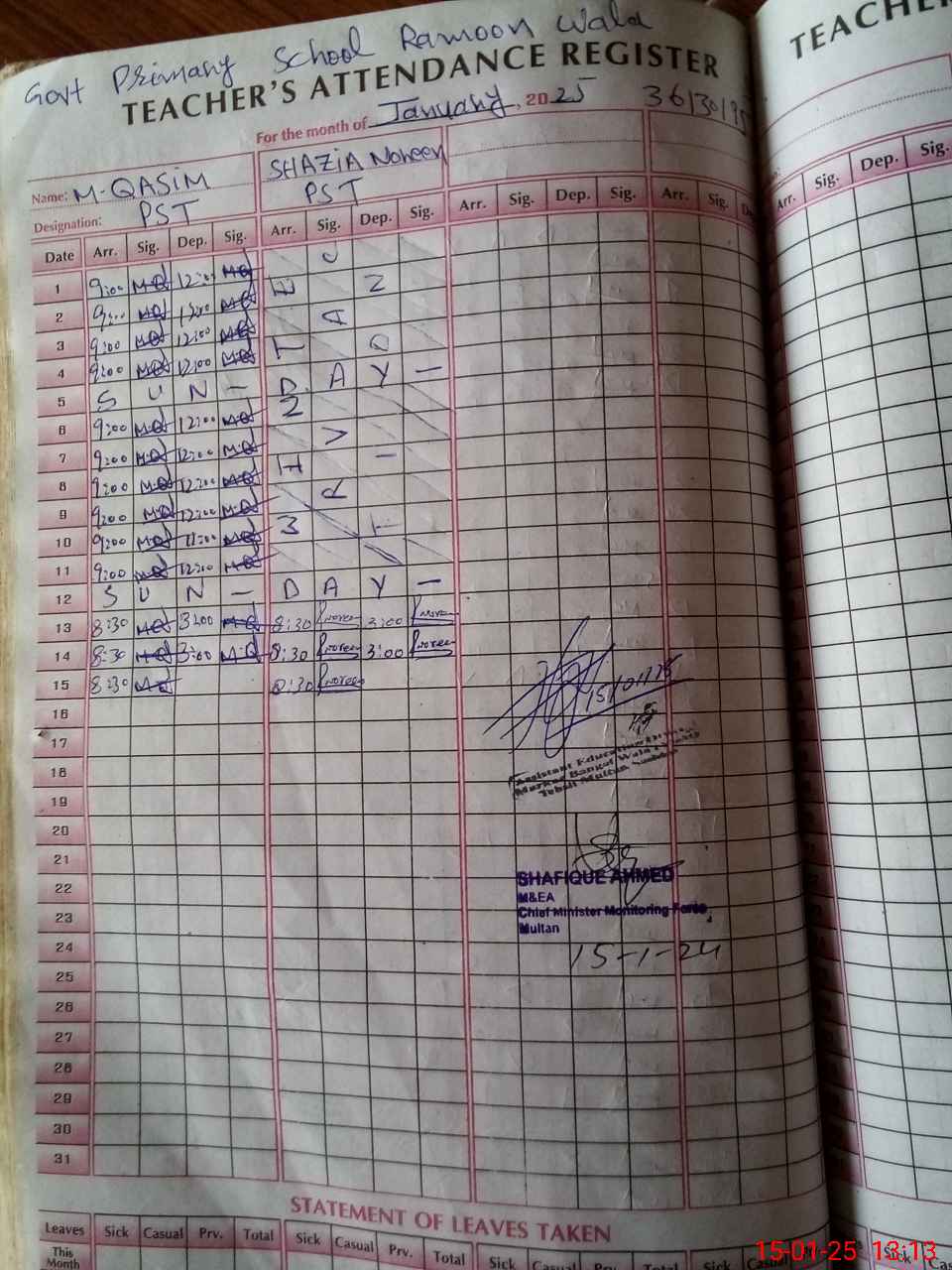 | Name: Mu**** Qa**** Designation: (School Headmaster's/Headmistress's) PST Phone/Cell Number: 03**** |
