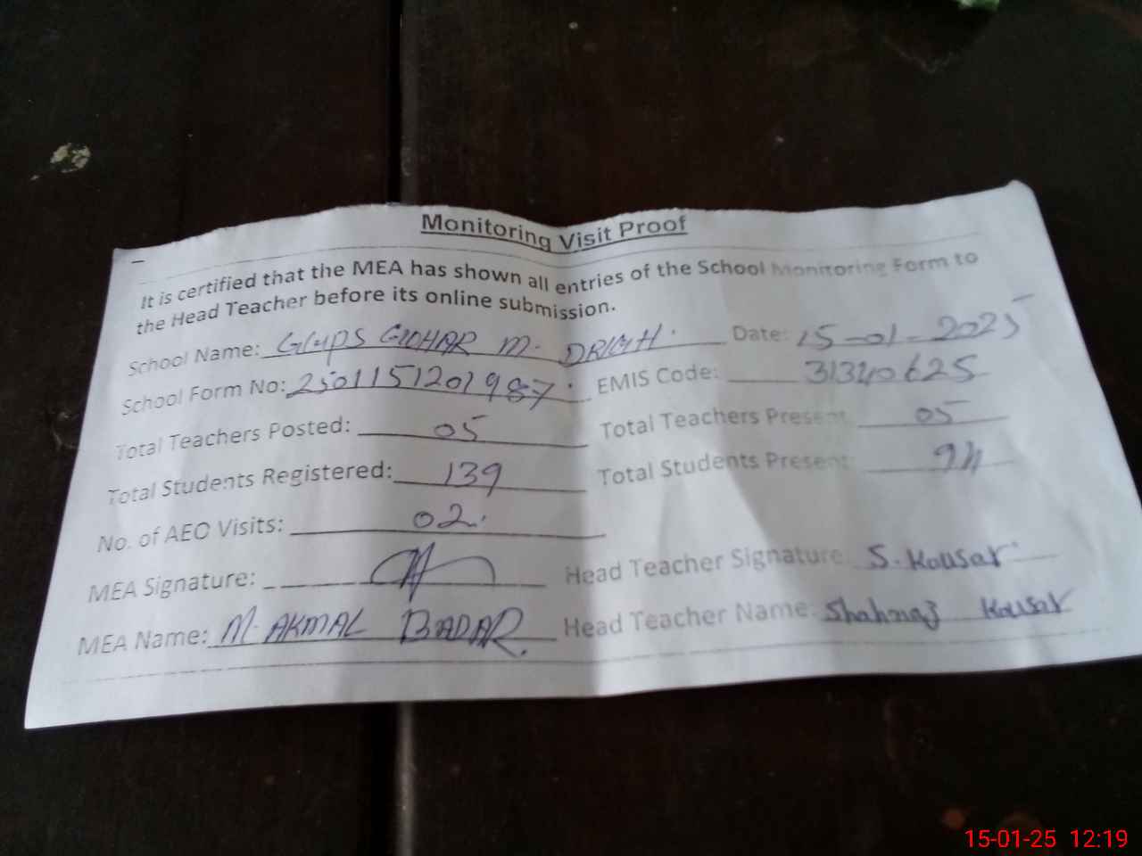 | EMIS Code: 31340625 | Name of School: GGPS GOHAR MUHAMMAD DRGH | |||