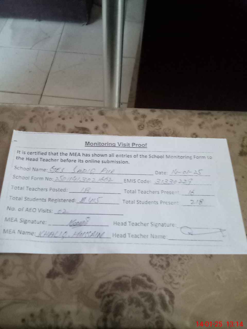 | EMIS Code: 31330229 | Name of School: GES SADIQ PUR | |||