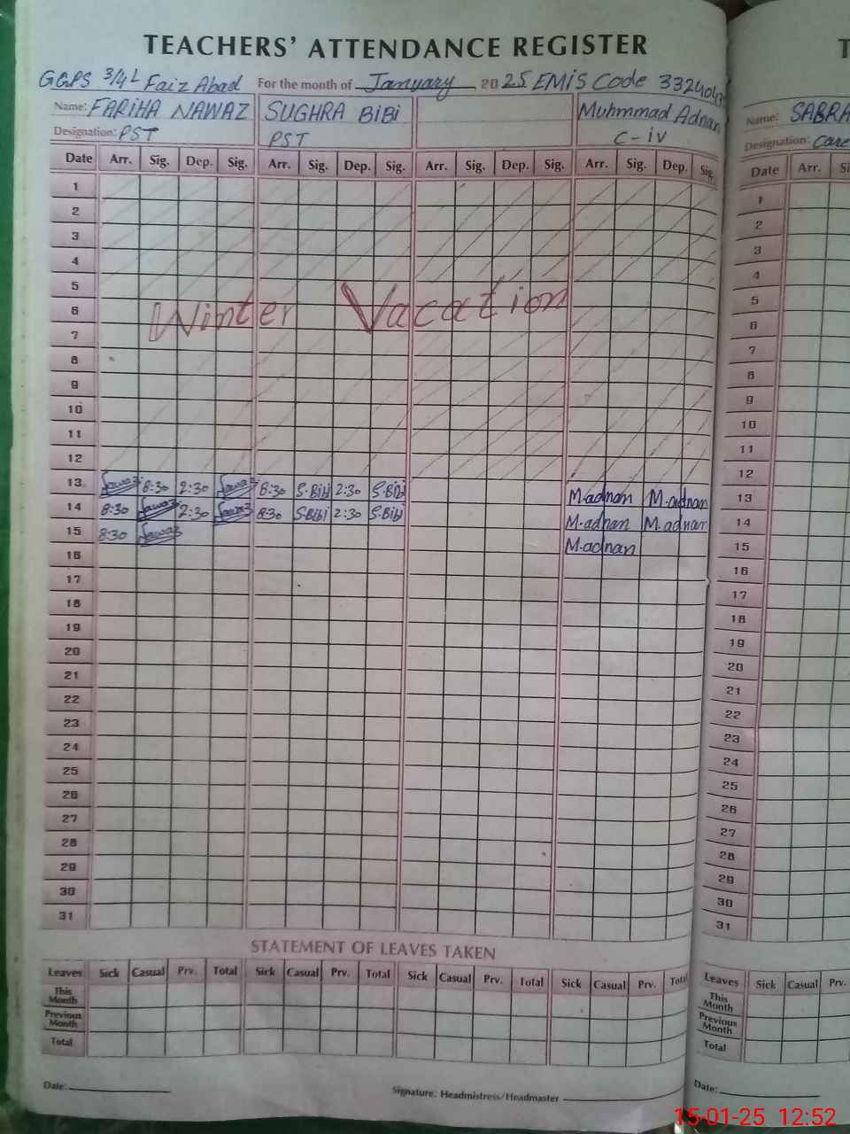 | 33**** | Su**** Bi**** | PST | Regular | 0 | 0 | 0 | 0 | 0 | 0 | 0 | 0 | 0 | Absent (Un-Authorized) |