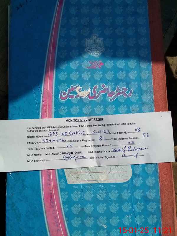 | EMIS Code: 38410326 | Name of School: GPS CHAK NO.1 NB GAKHRA | |||