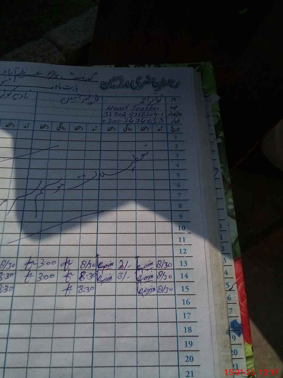 | Name: Mu**** is**** Designation: (School Headmaster's/Headmistress's) pst Phone/Cell Number: 03**** |