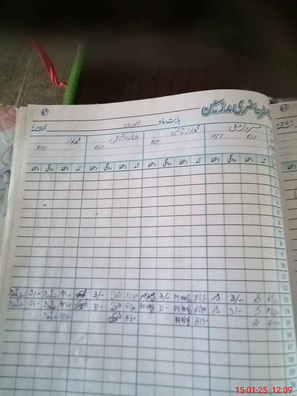 | CNIC | Full Name | Designation | R/C | Absence During Last Calender Month |