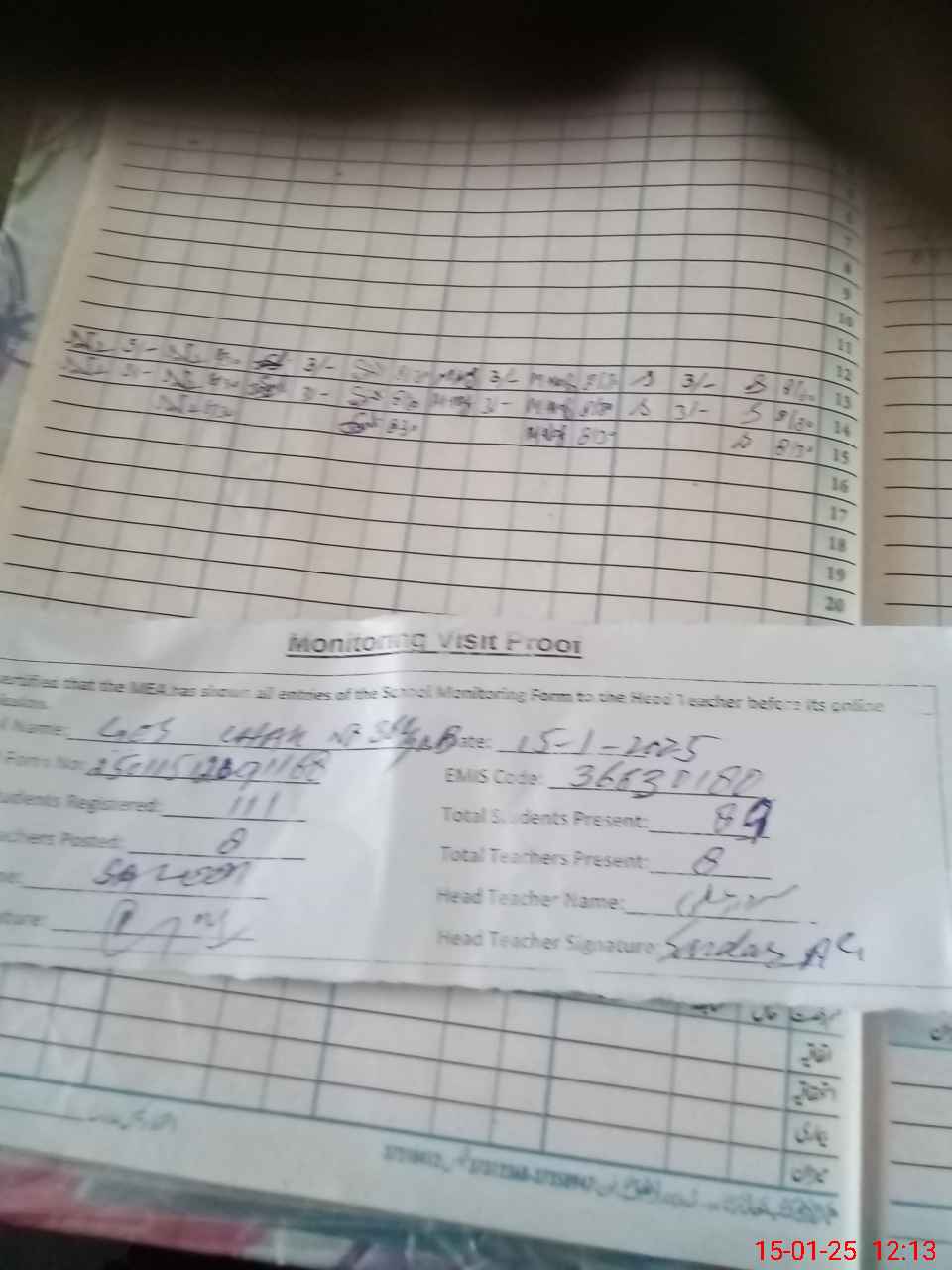| Attendance Register | Head Teacher | MEA with School | Visit Proof |