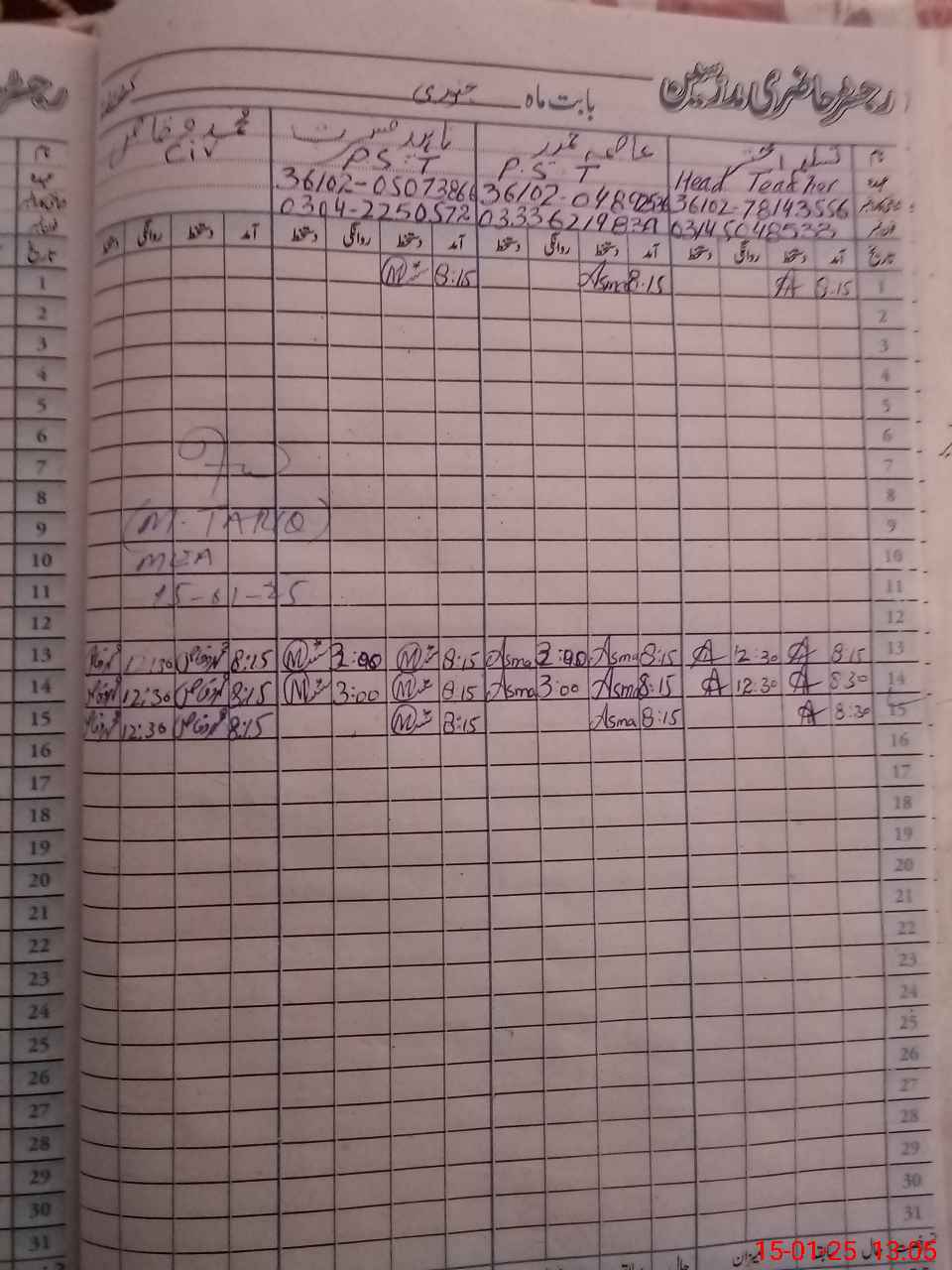 | Name: TA**** AK**** Designation: (School Headmaster's/Headmistress's) PST Phone/Cell Number: 03**** |