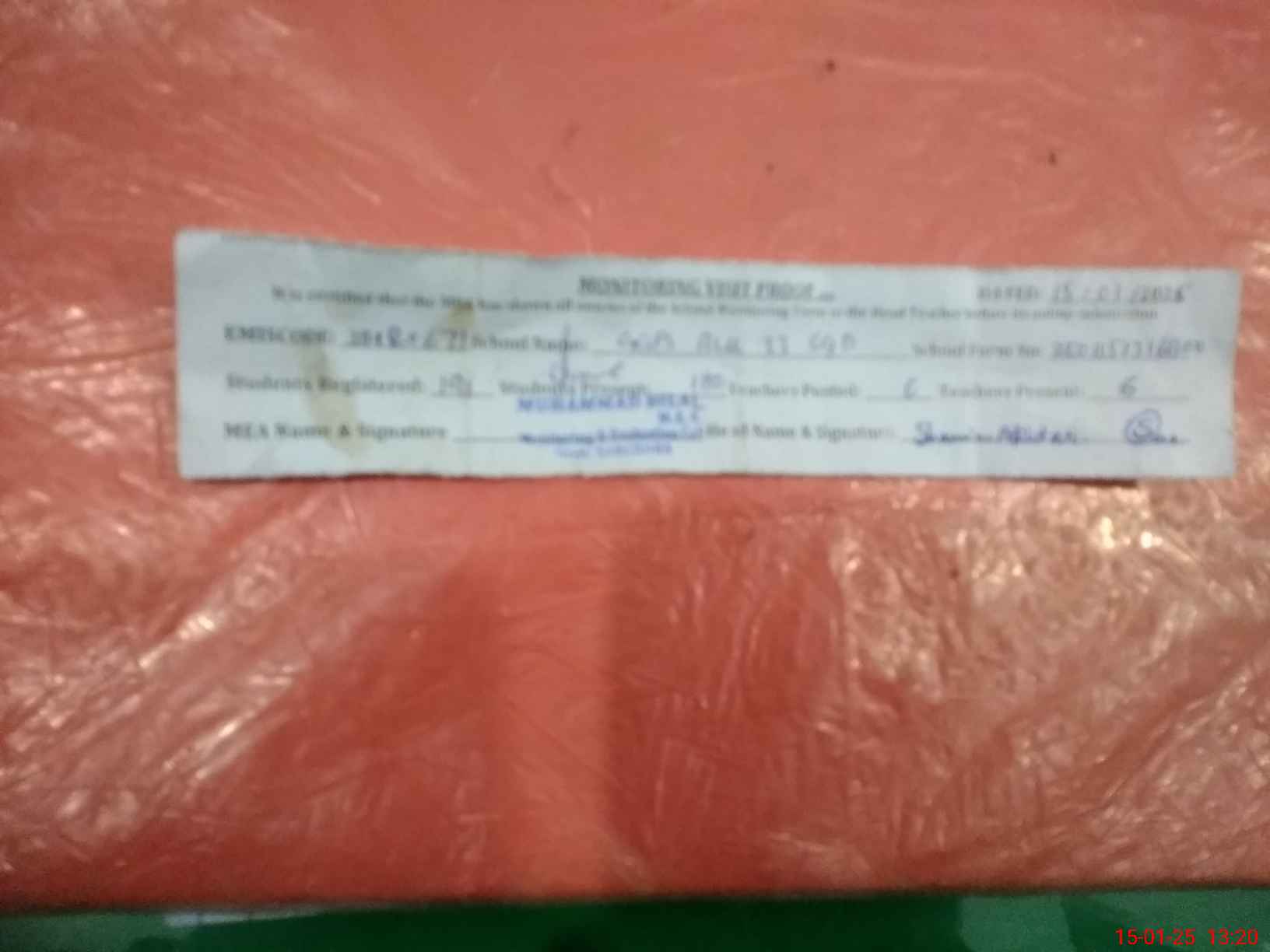 | Attendance Register | Head Teacher | MEA with School | Visit Proof |