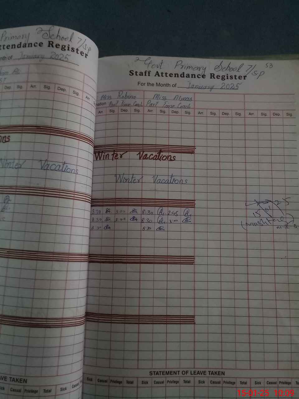 | Leave | Duty | Absent | Maternity | Medical | Ex- Pak |
