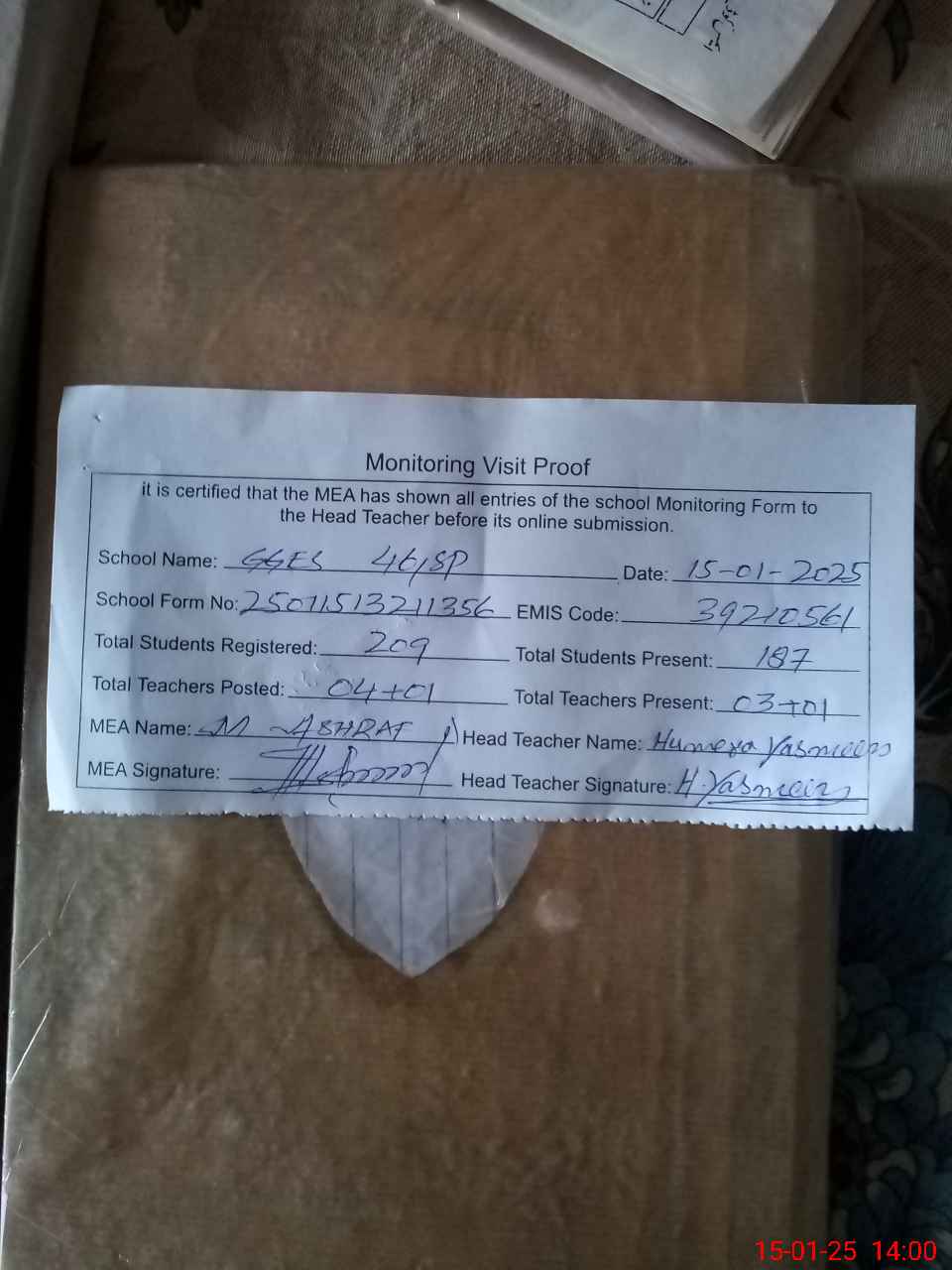| EMIS Code: 39210561 | Name of School: GGES 46/SP | |||