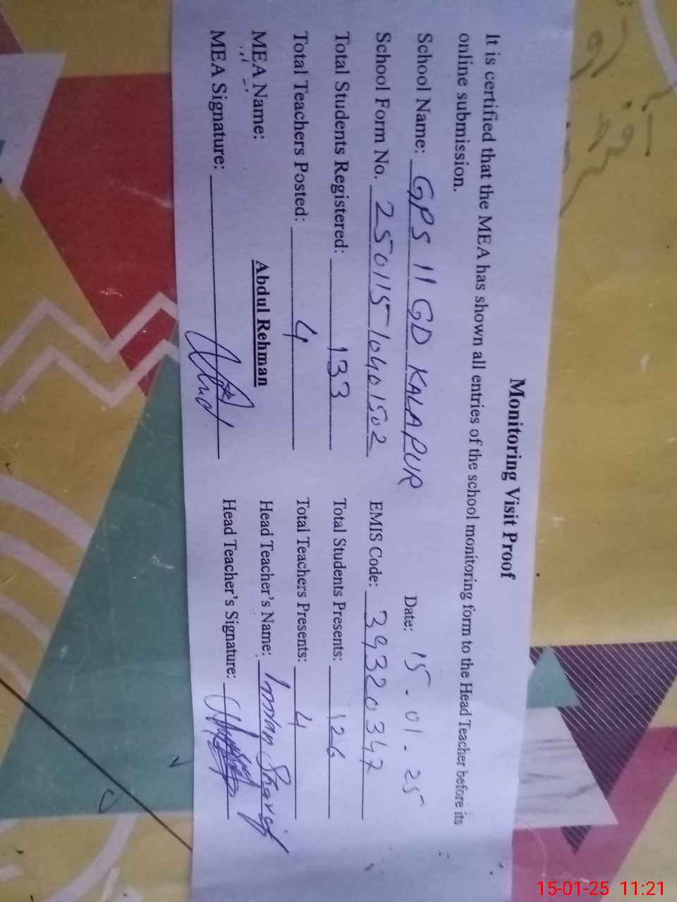 | EMIS Code: 39320347 | Name of School: GPS 11/G.D KALAPUR | |||