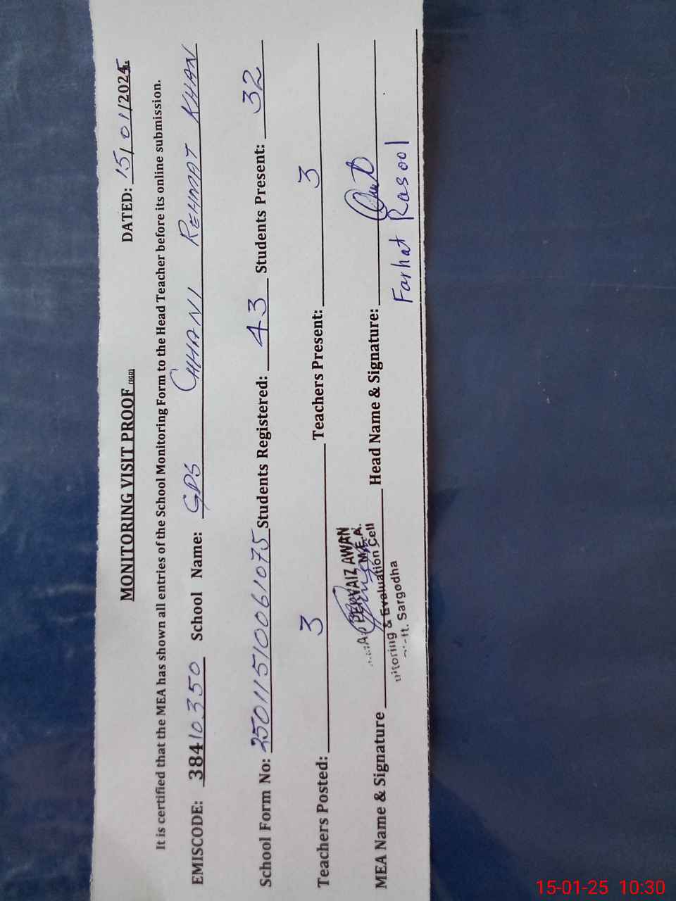 | EMIS Code: 38410350 | Name of School: GPS CHHANI RAHMAT KHAN | |||