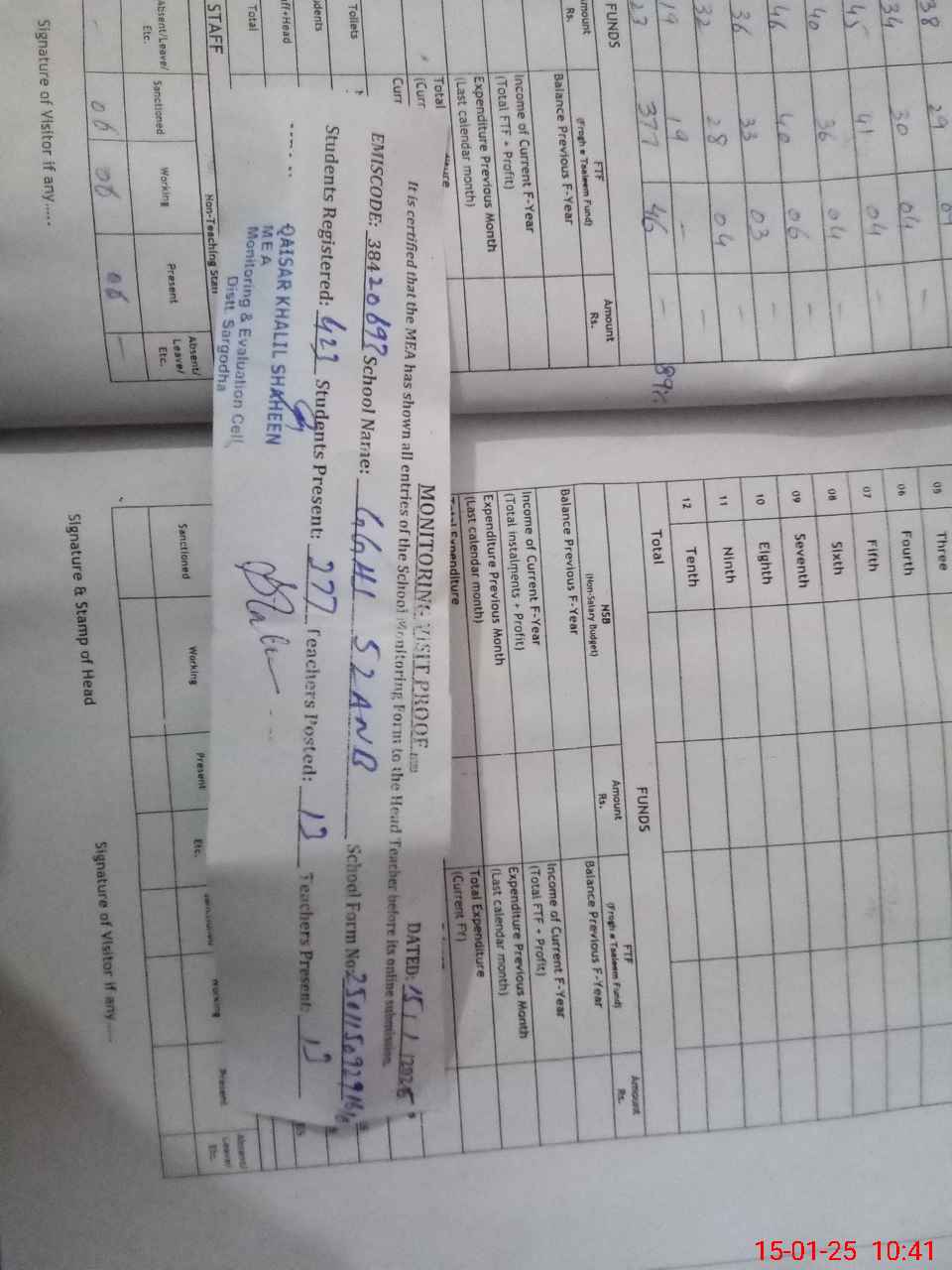 | Certified that this School was Inspected by the Undersigned MEA/DMO Today and the Information Stated Above is as Per Record. | |||||