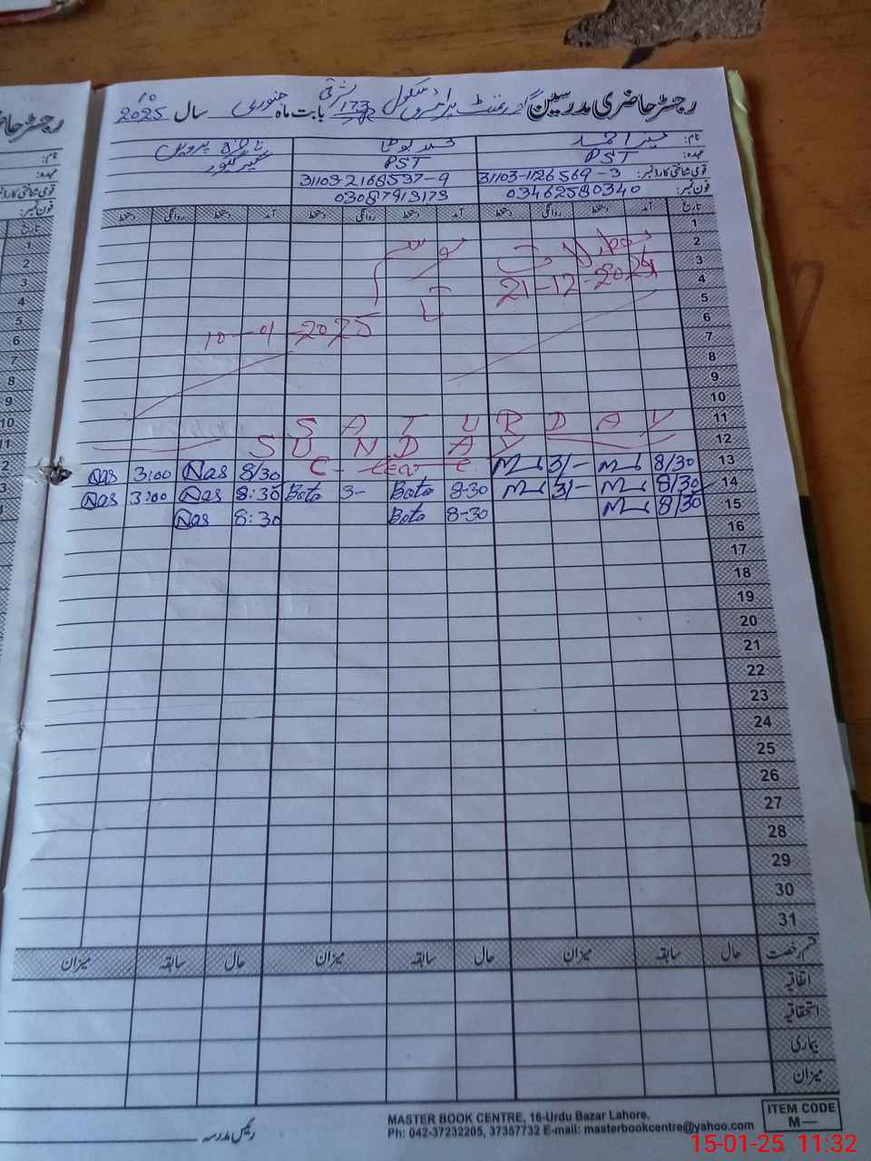 | CNIC | Full Name | Designation | R/C | Absence During Last Calender Month |