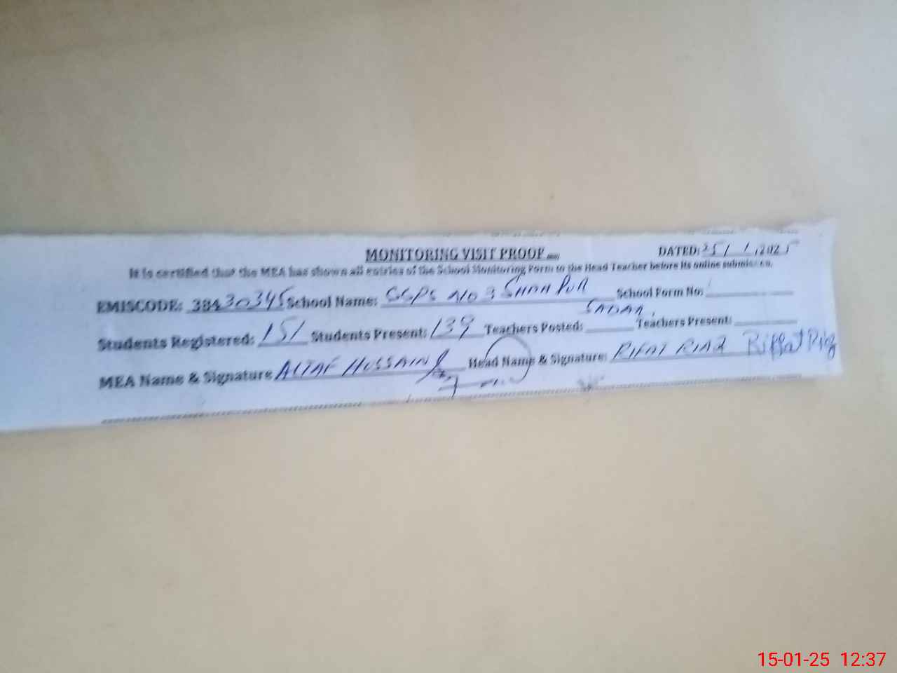 | EMIS Code: 38430345 | Name of School: GGPS NO.3 SHAH PUR SADDAR | |||