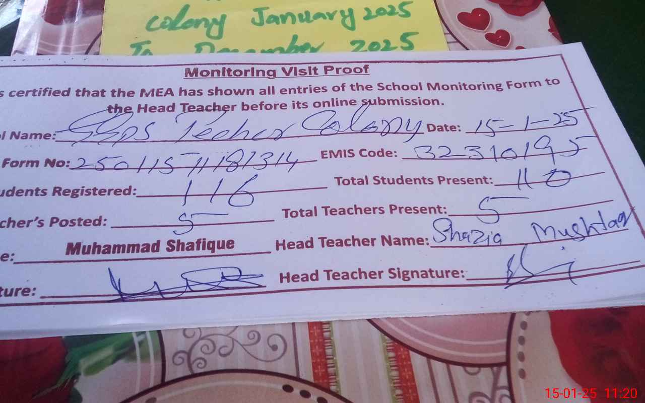 | EMIS Code: 32310195 | Name of School: GGPS TEACHER COLONY | |||