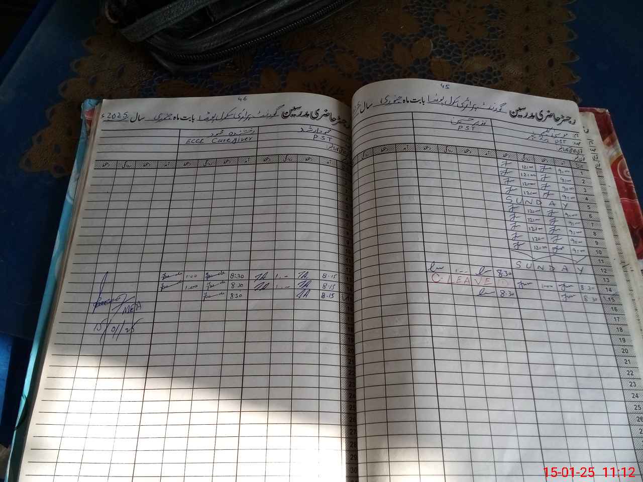 | CNIC | Full Name | Designation | R/C | Absence During Last Calender Month |