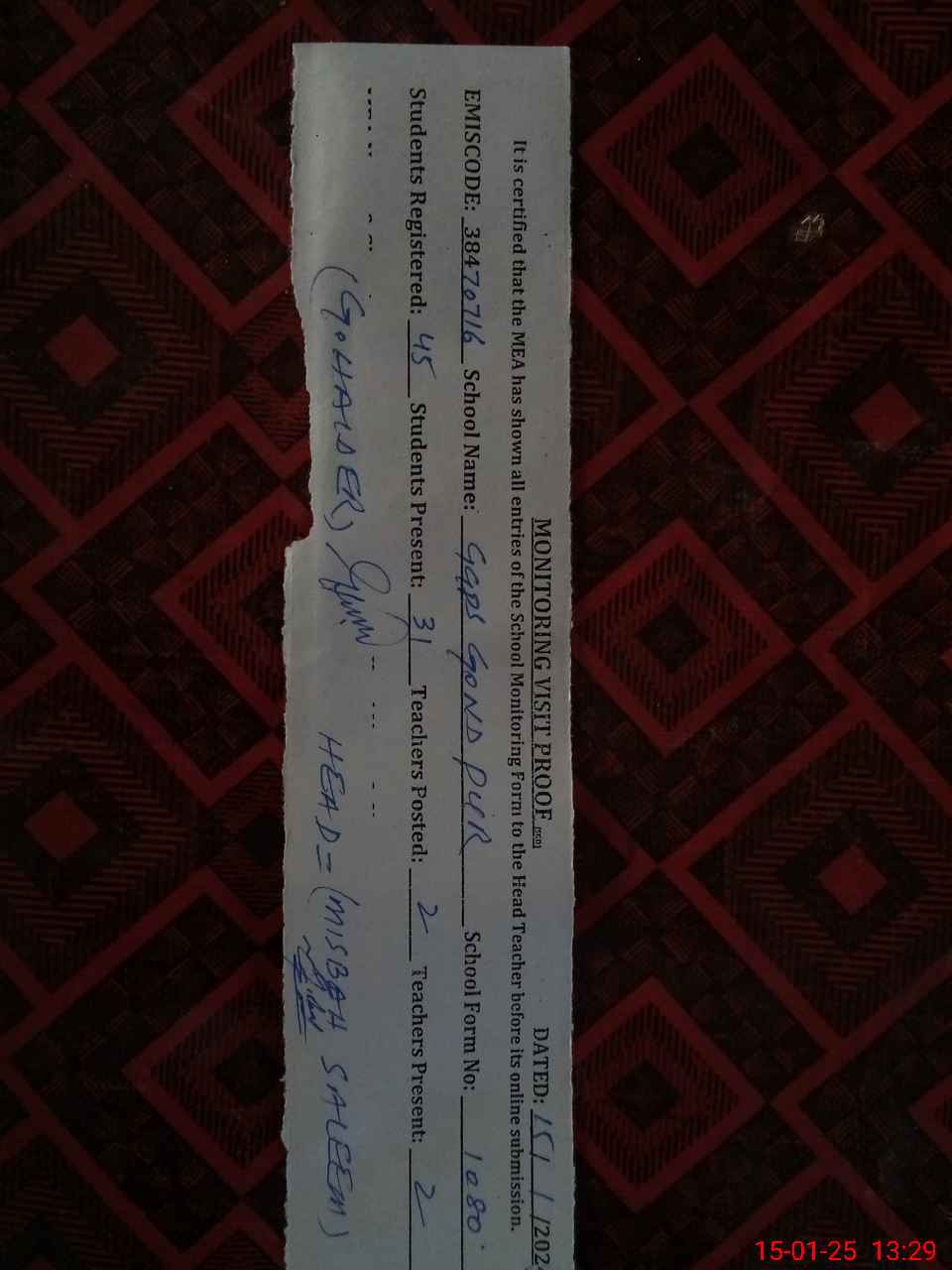 | EMIS Code: 38470716 | Name of School: GGPS GOND PUR | |||