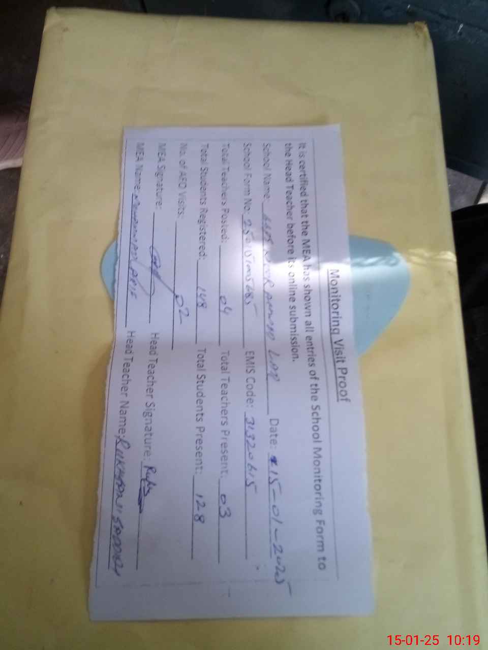 | Certified that this School was Inspected by the Undersigned MEA/DMO Today and the Information Stated Above is as Per Record. | |||||