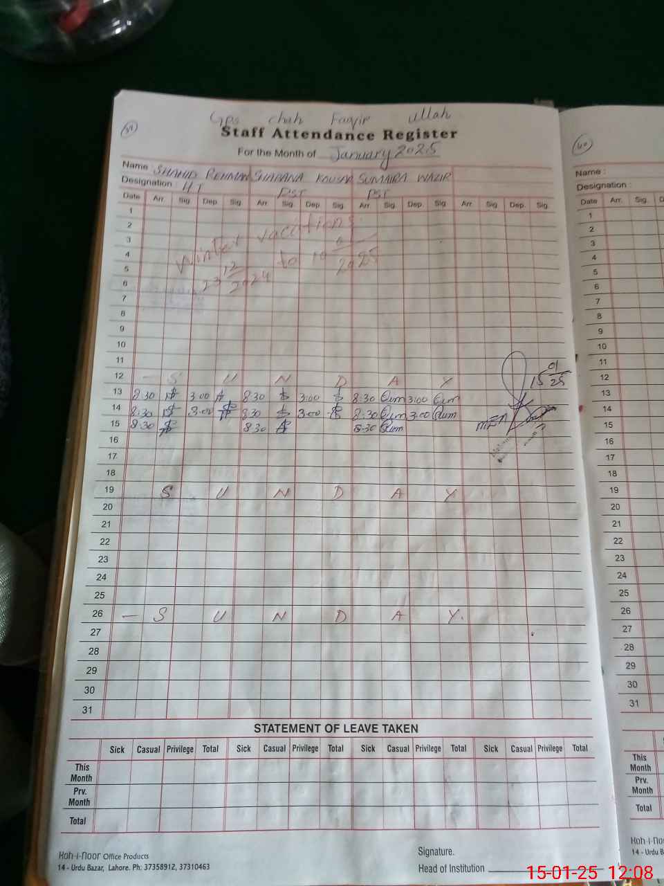 | Name: Sh**** Re**** Designation: (School Headmaster's/Headmistress's) Headmaster Phone/Cell Number: 03**** |