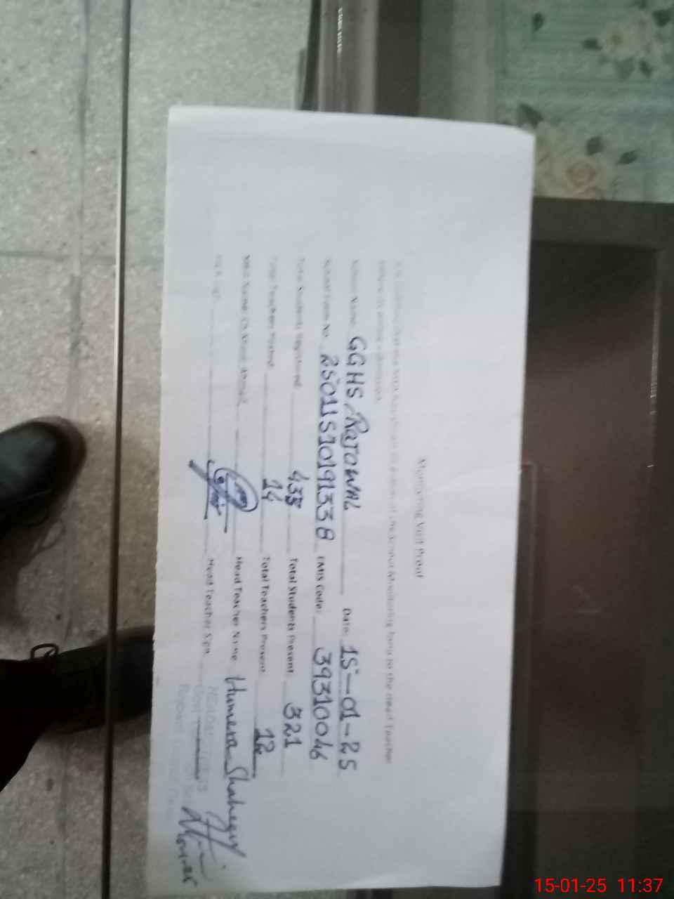| Attendance Register | Head Teacher | MEA with School | Visit Proof |