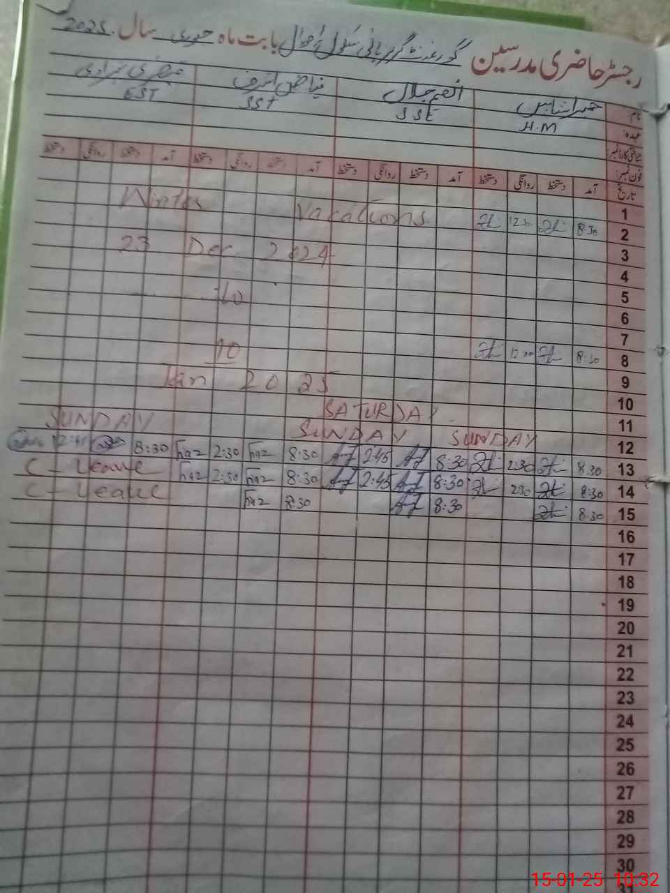 | CNIC | Full Name | Designation | R/C | Absence During Last Calender Month |