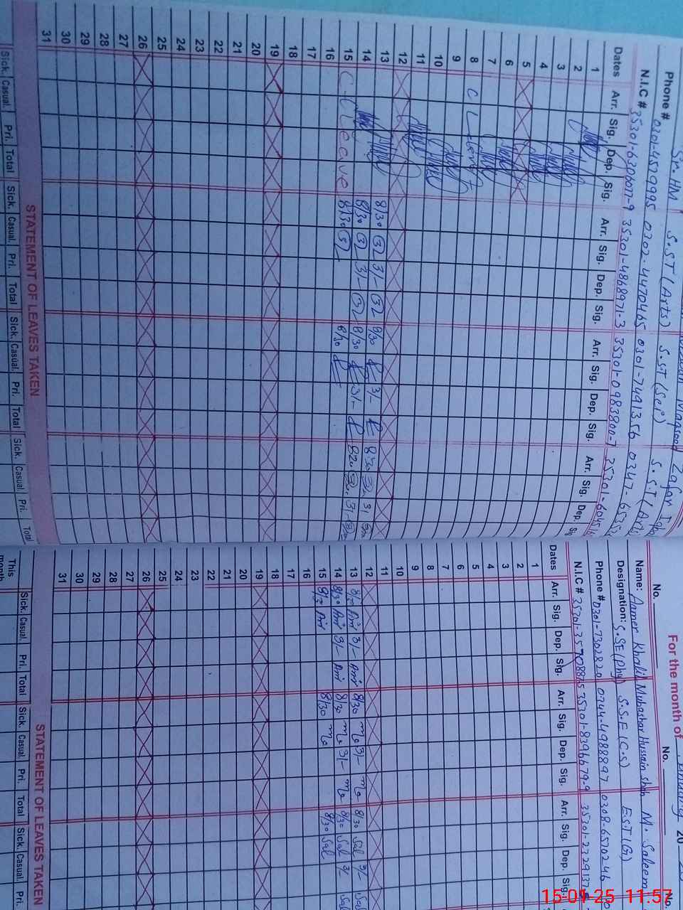 | CNIC | Full Name | Designation | R/C | Absence during last cal. month |