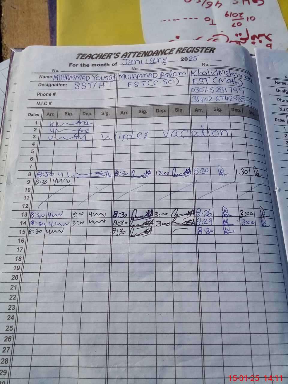 | Name: Mu**** Yo**** Designation: (School Headmaster's/Headmistress's) S.S.T.(GEN) Phone/Cell Number: 03**** |