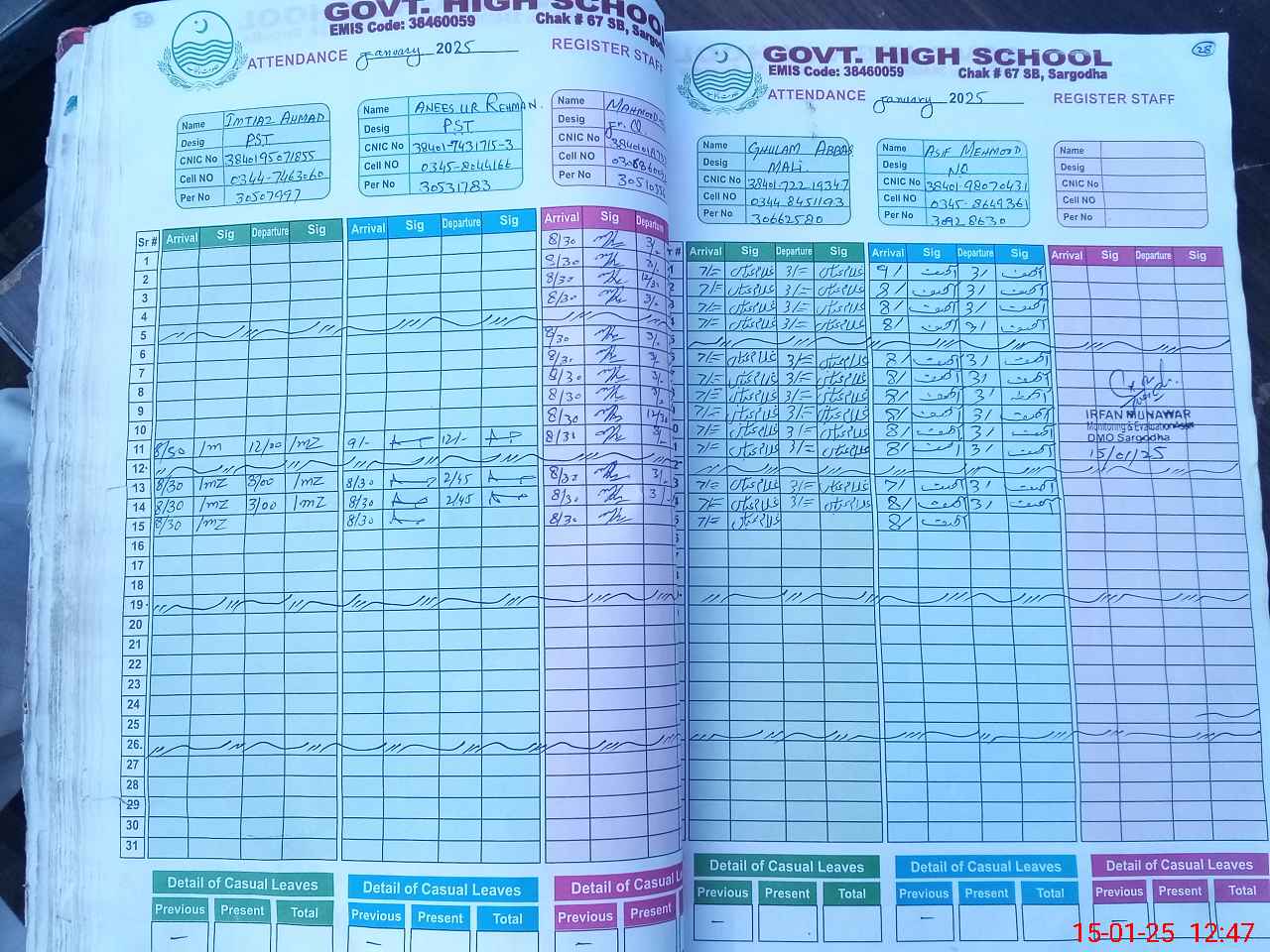 | CNIC | Full Name | Designation | R/C | Absence during last cal. month |