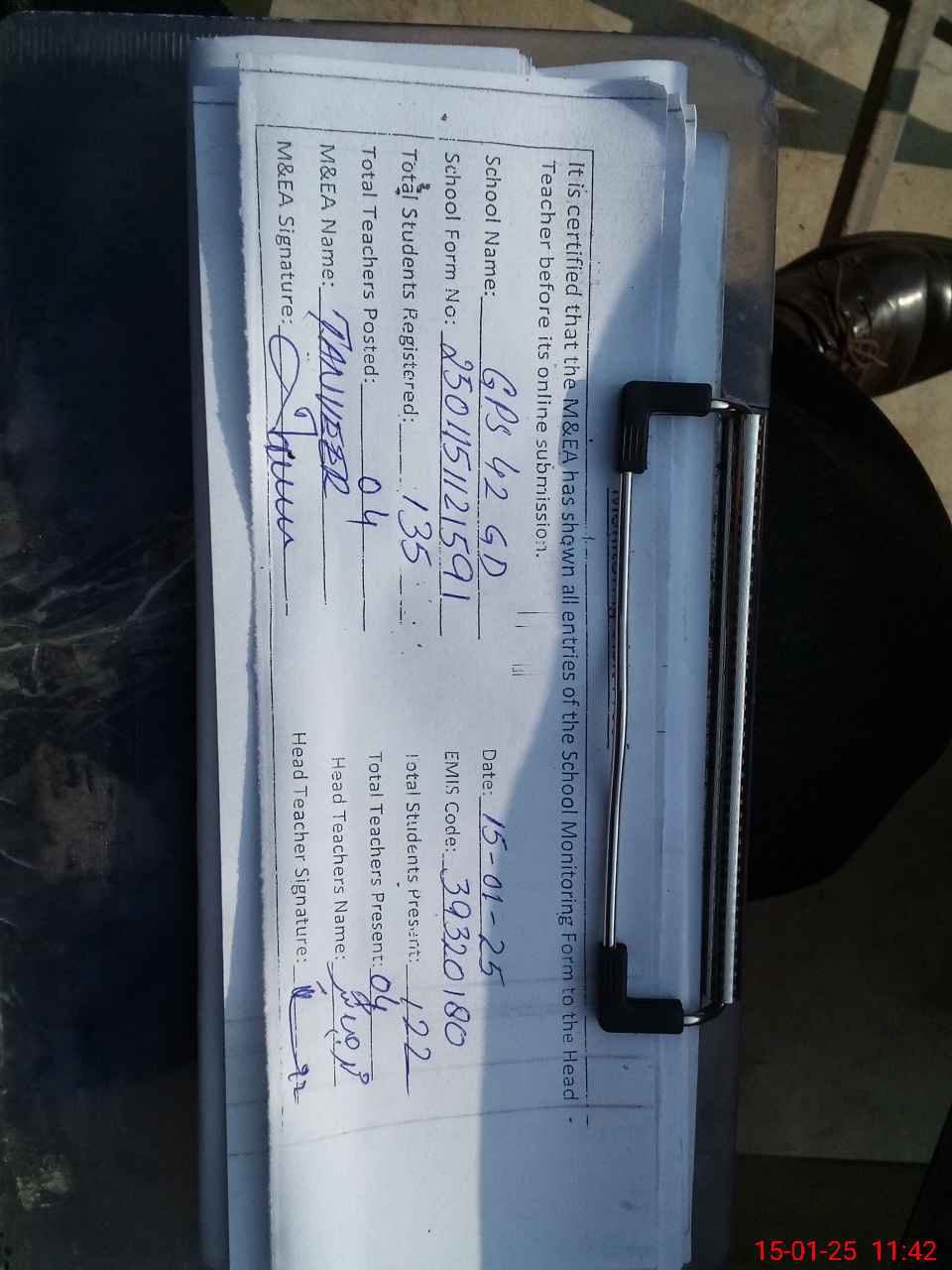 | EMIS Code: 39320180 | Name of School: GPS CHAK 42/G.D | |||