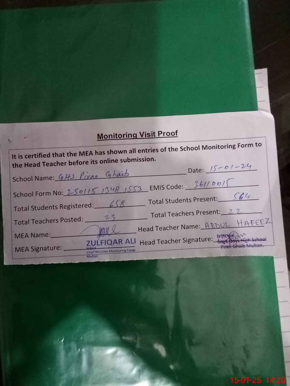 | EMIS Code: 36110015 | Name of School: GHS PIRAN GHAIB NEAR THERMAL POWER STATION | |||