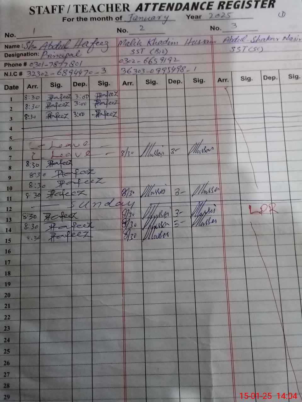 | Name: Sh**** Iq**** Designation: (School Headmaster's/Headmistress's) Principal Phone/Cell Number: 03**** |