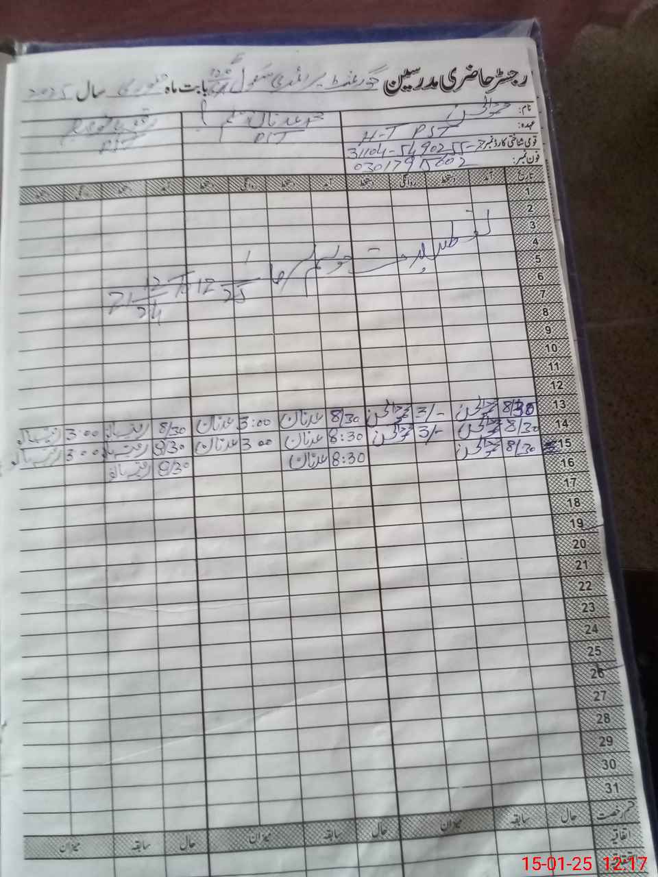 | Name: ME**** ULHA**** Designation: (School Headmaster's/Headmistress's) PST Phone/Cell Number: 03**** |