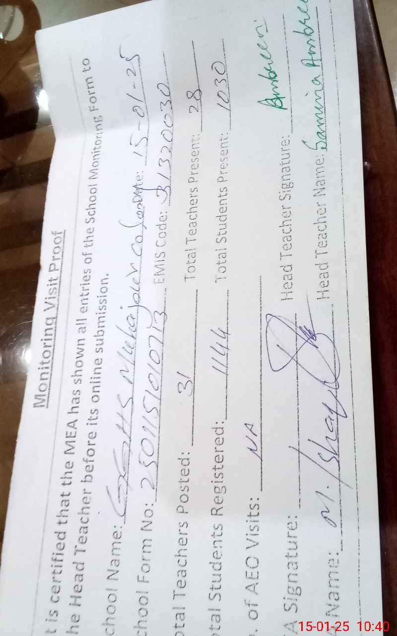 | Certified that this School was Inspected by the Undersigned MEA/DMO Today and the Information Stated Above is as Per Record. | |||||