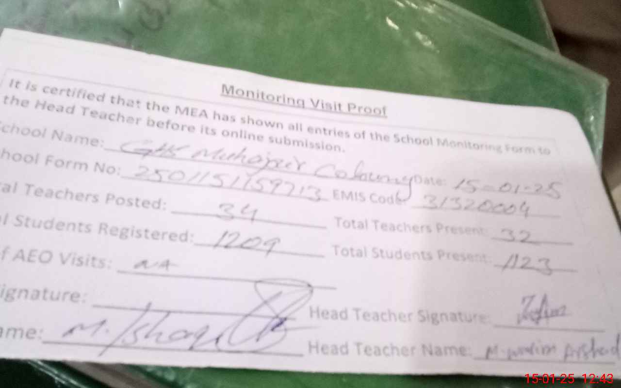 | EMIS Code: 31320004 | Name of School: GHS MOHAJAR COLONY | |||