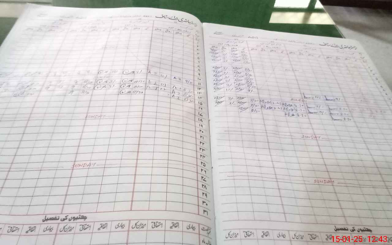 | CNIC | Full Name | Designation | R/C | Absence During Last Calender Month |