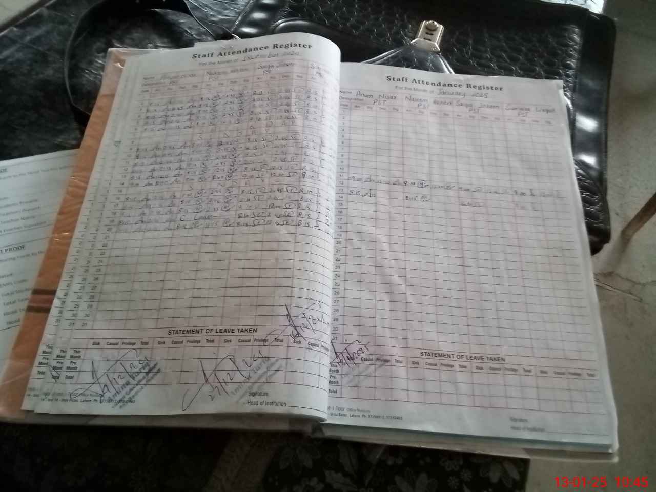 | CNIC | Full Name | Designation | R/C | Absence During Last Calender Month |