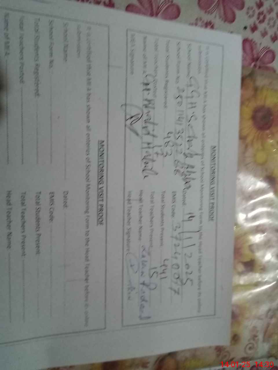 | Name: Za**** Ra**** Designation: (School Headmaster's/Headmistress's) Headmistress Phone/Cell Number: 03**** |