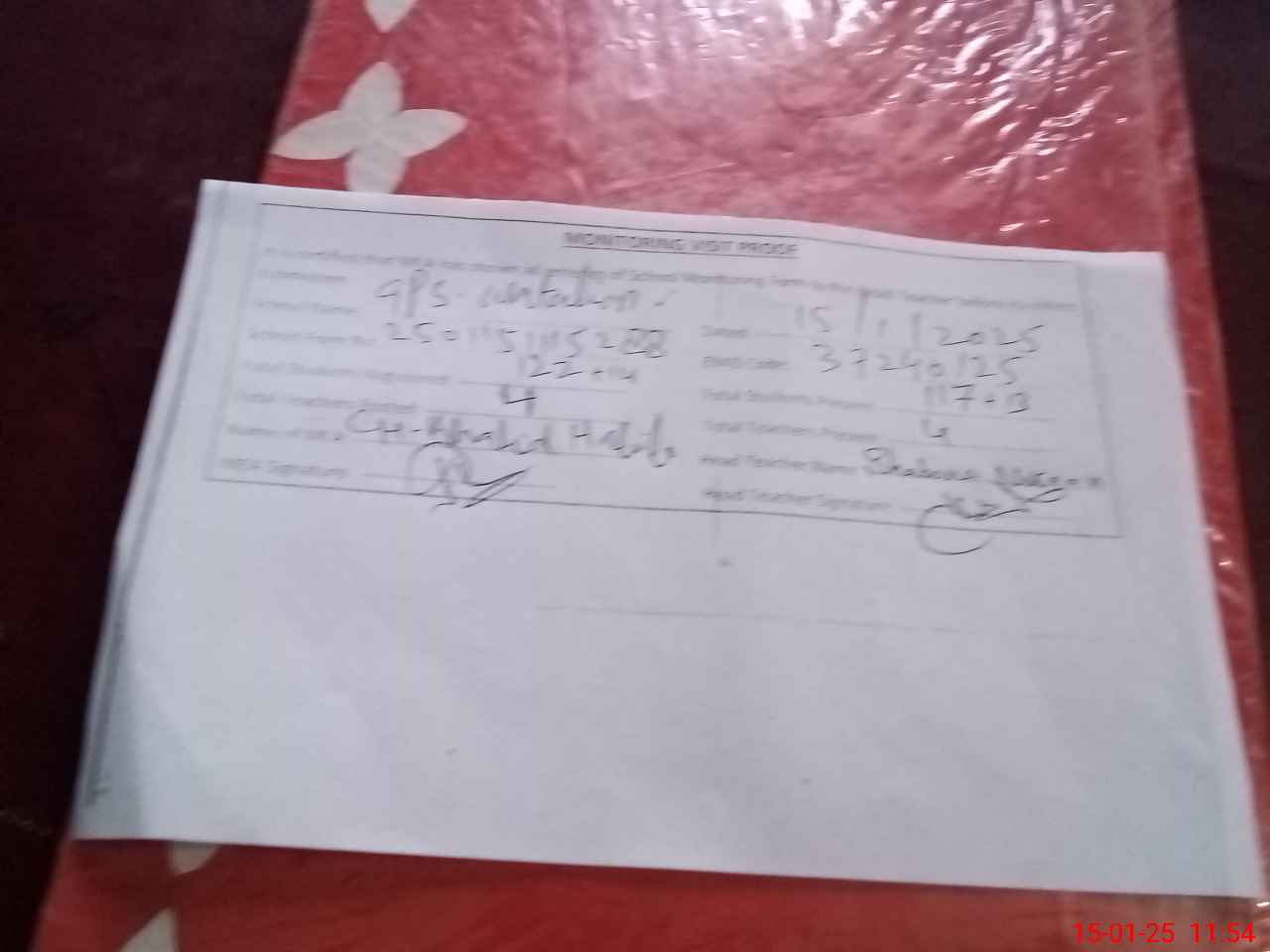 | Attendance Register | Head Teacher | MEA with School | Visit Proof |