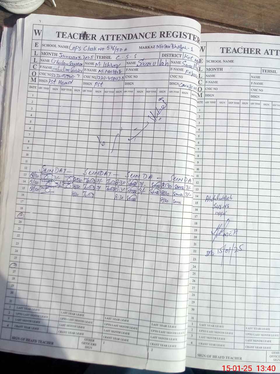 | CNIC | Full Name | Designation | R/C | Absence During Last Calender Month |