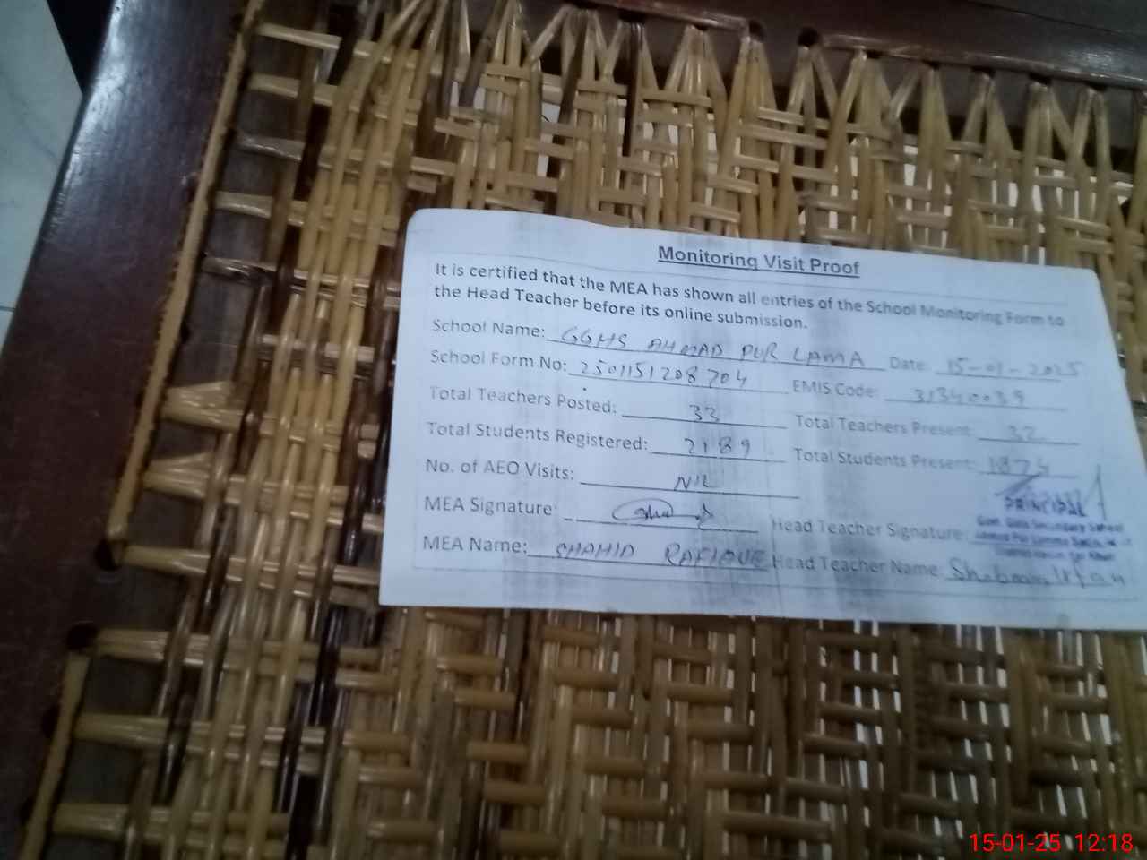 | EMIS Code: 31340039 | Name of School: GGHS AHMAD PUR LAMMA | |||